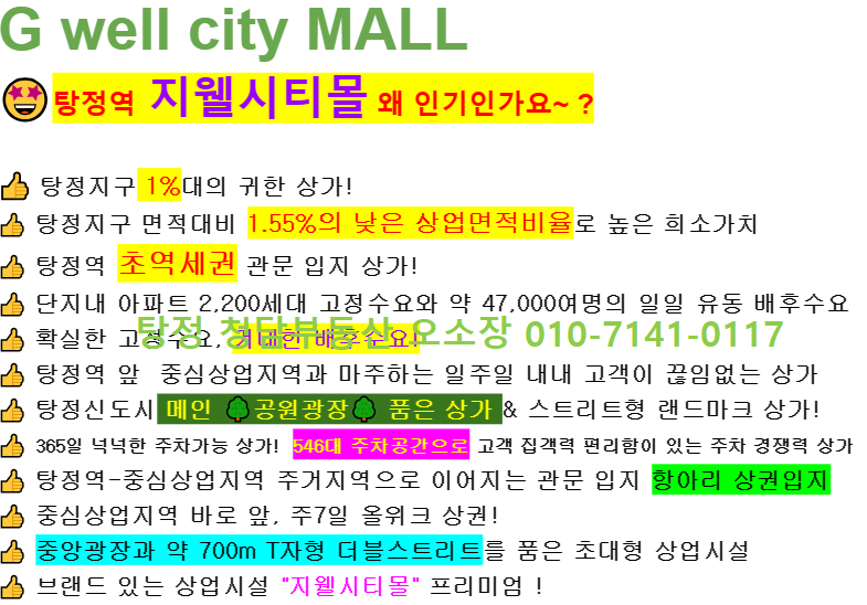 탕정지웰시티몰3단지 J동 211.212호 지상 3 / 지하 1
